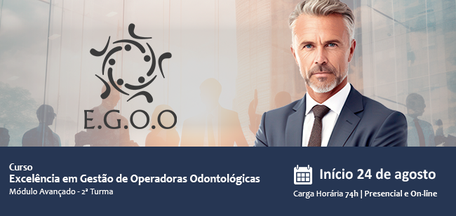 Estamos promovendo também a 2ª Edição do Módulo Avançado do Curso EGOO (Excelência em Gestão de Operadoras Odontológicas), uma oportunidade especial para que os profissionais aprimorem seus conhecimentos em gestão, com o apoio de alguns dos maiores especialistas do mercado. O Curso é de fundamental importância para aprofundar os conhecimentos técnicos, ter uma visão geral da complexidade da Saúde Odontológica Suplementar e se diferenciar dentro da Operadora em que trabalha.